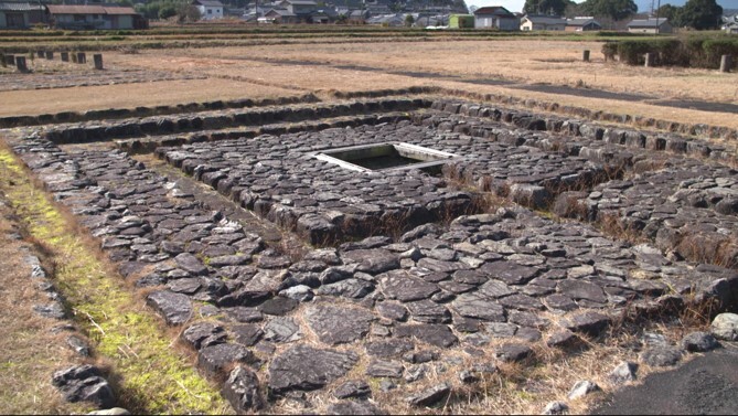 These were tile-roofed, stone-based structures introduced through technologies brought by immigrants and students from East Asia, in sharp contrast to the Asuka palaces, which were post in ground buildings — a traditional Japanese architectural style handed down since antiquity.
