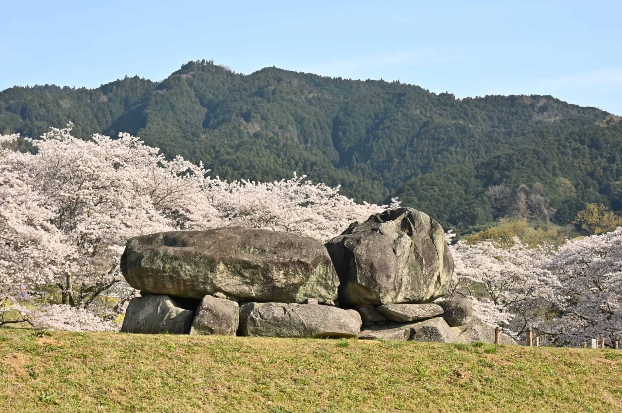 Constructed in the early 7th century, the tumulus measures about 50 meters on each side and contains a stone-lined chamber made of huge boulders. It is widely believed to be the tomb of Soga no Umako, the head of the most powerful clan at the time.