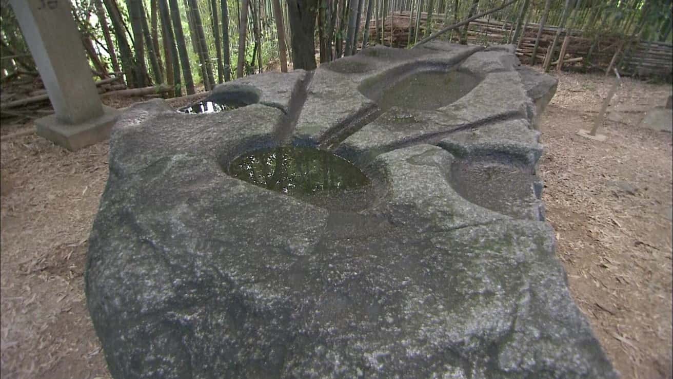 The Sakafuneishi stone on the hilltop and the sacred water flowed to a turtle-shaped stone basin below, where imperial rituals were performed by the emperor.